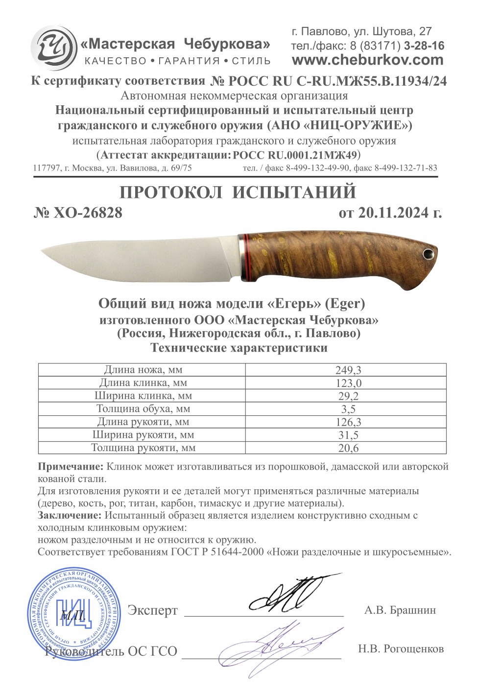 Длина клинка 123 мм